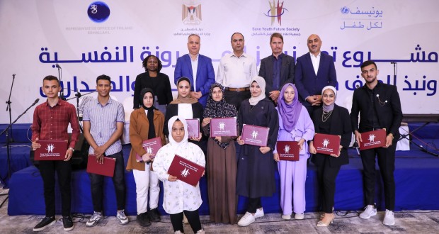اختتمت جمعية إنقاذ المستقبل الشبابي الثلاثاء 20/6/2023، بالتعاون مع وزارة التربية والتعليم العالي ومنظمة اليونيسيف وبتمويل من الحكومة الفنلندية، مشروع “تعزيز المرونة النفسية ونبذ العنف في رياض الأطفال والمدارس”. يهدف هذا المشروع إلى تقليل العنف وتعزيز المرونة النفسية لدى الأطفال والشباب في مناطقهم. تم عرض مخرجات المشروع الذي استمر لمدة ثلاث سنوات خلال الحفل الختامي، حضره ممثل الحكومة الفنلندية السيد يوسي كاراكوسكي، وممثل منظمة اليونيسيف السيد راميز، وممثل وزارة التربية والتعليم السيد جمال الفليت، ورئيس مجلس إدارة الجمعية السيد عماد درويش ومديرها التنفيذي السيد بهاء الدين فارس.