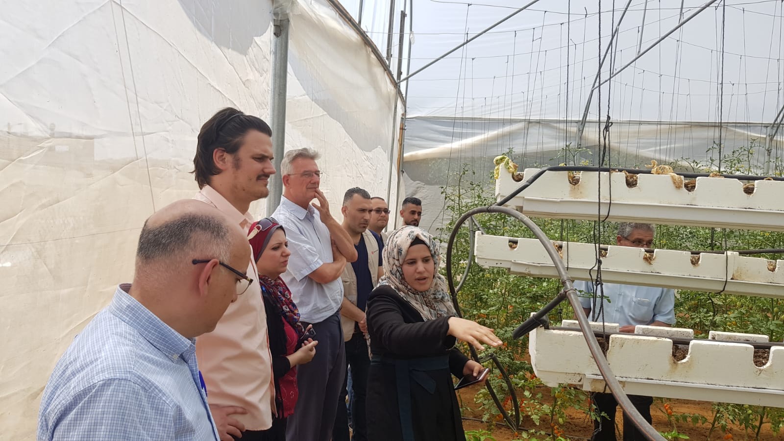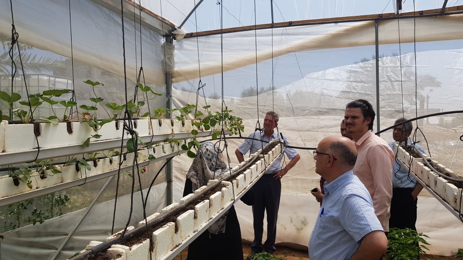 with the presence of SYFS project team and Save the Children team. they made field visits to two of green job businesses " Hydroponic and Hanging entrepreneur models in the North of Gaza within the project of " Strengthening Resilience, Agricultural Recovery and Green Technology in Gaza Strip " they were briefed on the system operation, productivity and development plans